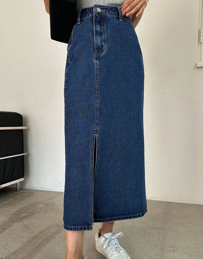 Essnce High Waist Split Thigh Denim Skirt