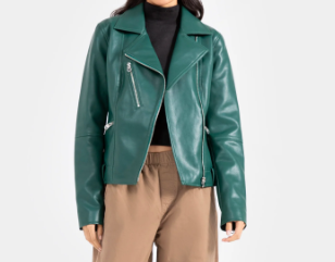 New Women Genuine Lambskin Real Leather Jacket Ladies Slim Fit Biker Coat Green WK077