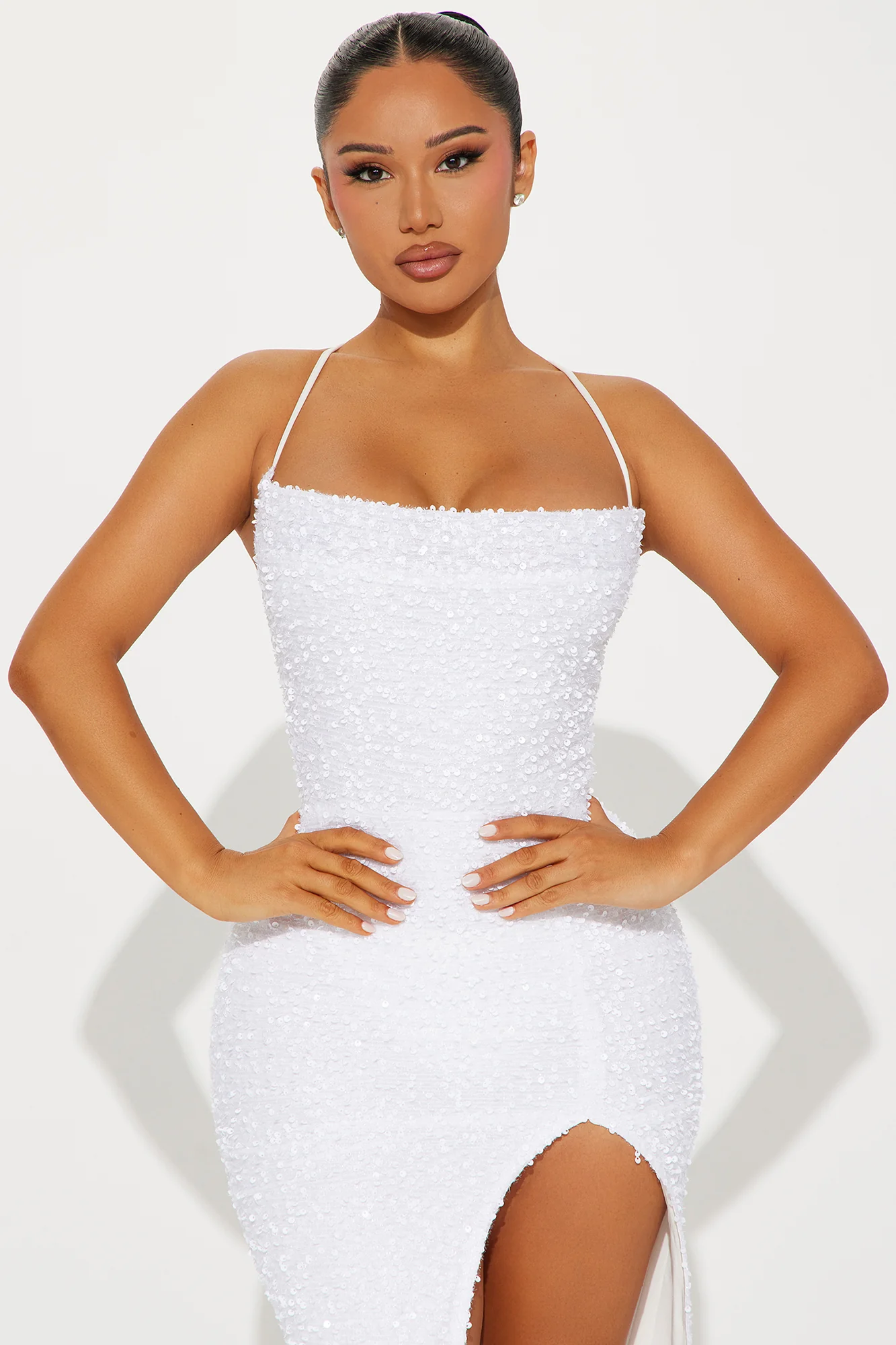 All Nighter Long Sleeve Sequin Gown - Nude/combo