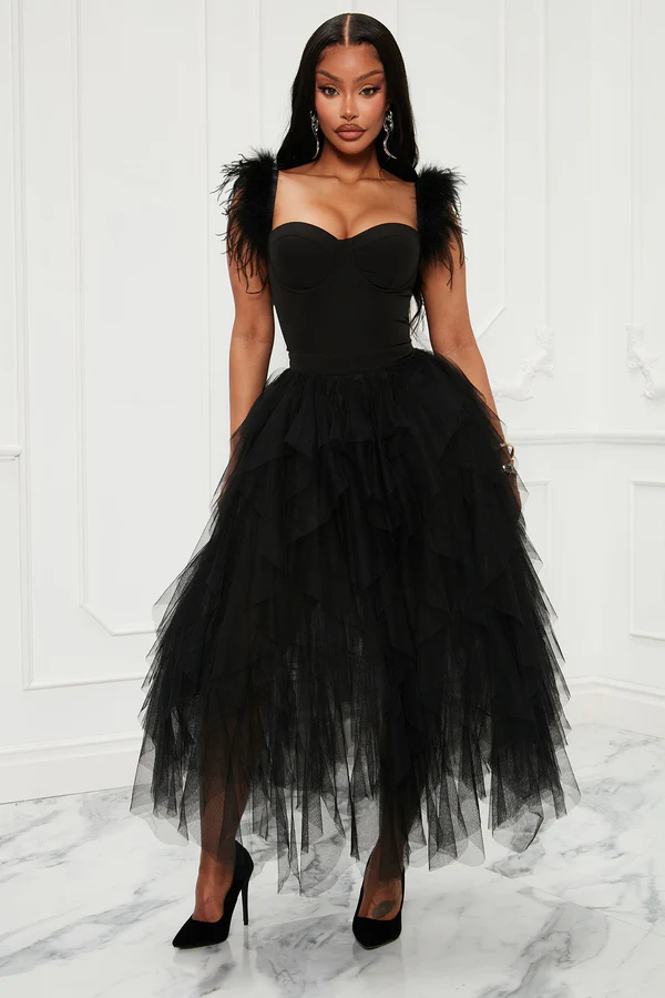 Priv Contrast Mesh Gigot Sleeve Bodycon Dress